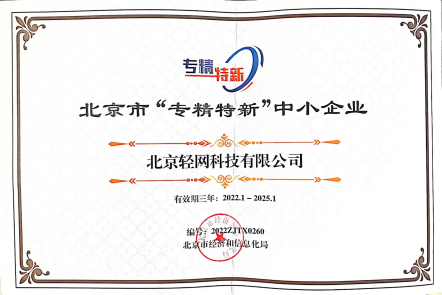 轻网科技被评为北京市“专精特新”中小企业和国家级专精特新“小巨人”企业。